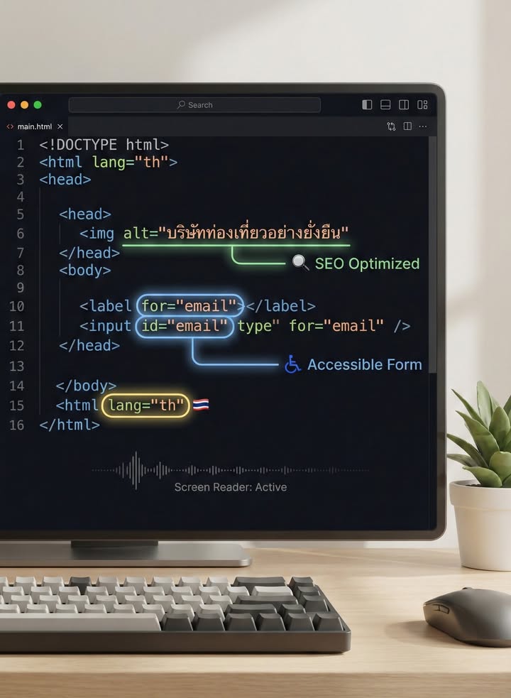 แม้เว็บไซต์จะออกแบบสวยและโค้ดดีเพียงใด แต่หากพลาดแอตทริบิวต์ HTML พื้นฐานอย่าง alt, label และ lang ก็อาจทำให้ทั้ง SEO และการเข้าถึงใช้งานแย่ลงได้ บทความนี้สรุปแนวทางใช้งานที่ถูกต้อง พร้อมเช็กลิสต์ก่อนปล่อยเว็บจริง