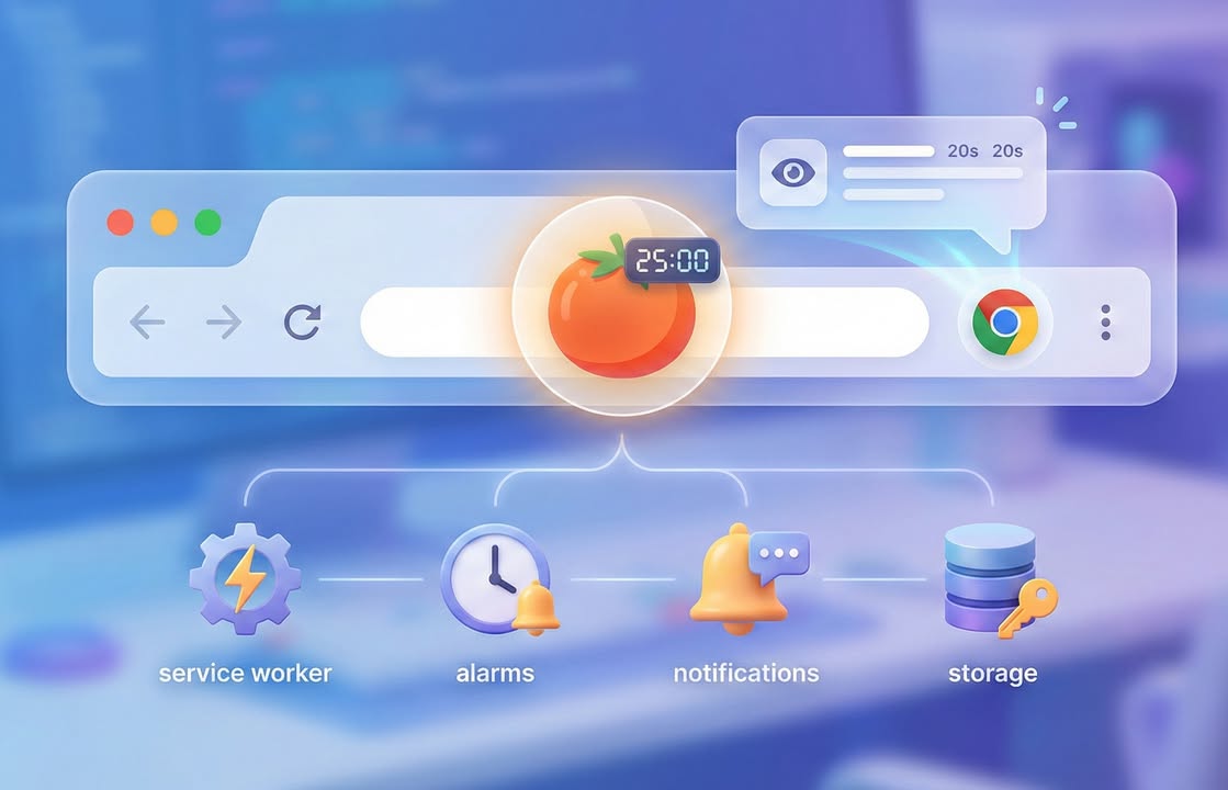 บทความนี้สรุปแนวทางสร้าง Chrome Extension สำหรับ Pomodoro Timer พร้อมแจ้งเตือนพักสายตา โดยเน้นการใช้ Manifest V3, service worker, chrome.alarms, notifications และ storage อย่างถูกต้องเพื่อให้ระบบเสถียรและไม่หลุดหลังรีสตา