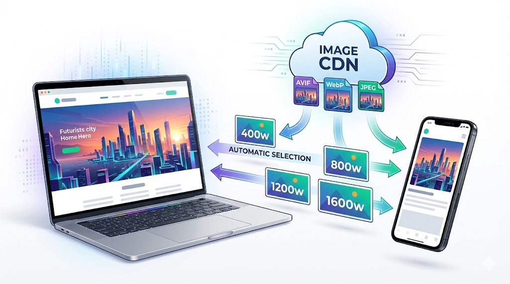 หากต้องการให้เว็บไซต์โหลดไวขึ้นอย่างรู้สึกได้ การจัดการรูปภาพคือหนึ่งในจุดที่คุ้มค่าที่สุด การใช้ Image CDN จะช่วยปรับขนาด บีบอัด เลือกฟอร์แมต และแคชภาพให้โดยอัตโนมัติ ส่วนการใช้ Responsive Images ผ่าน srcset และ sizes จะทำให้เบราว์เซอร์เลือกโหลดภาพที่เหมาะกับอุปกรณ์ของผู้ใช้จริง