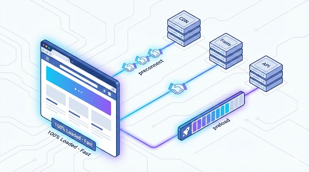 Preconnect คือการเร่งการเชื่อมต่อกับโดเมนปลายทางล่วงหน้า ส่วน Preload คือการเร่งโหลดไฟล์สำคัญก่อนเวลา ทั้งสองเทคนิคช่วยลดเวลารอในช่วงเริ่มต้น ซึ่งเป็นจุดที่ส่งผลต่อความรู้สึกว่าเว็บ “ไว” หรือ “ช้า” อย่างมาก