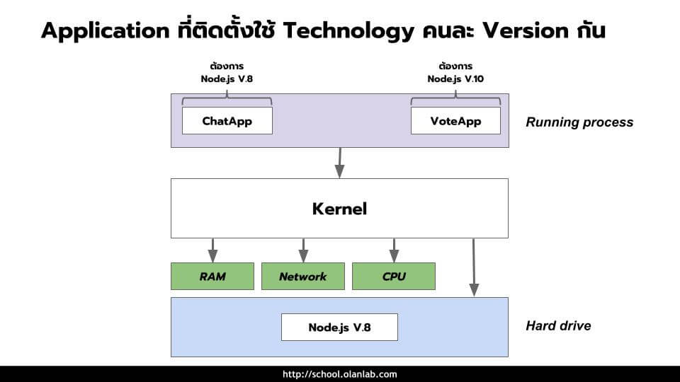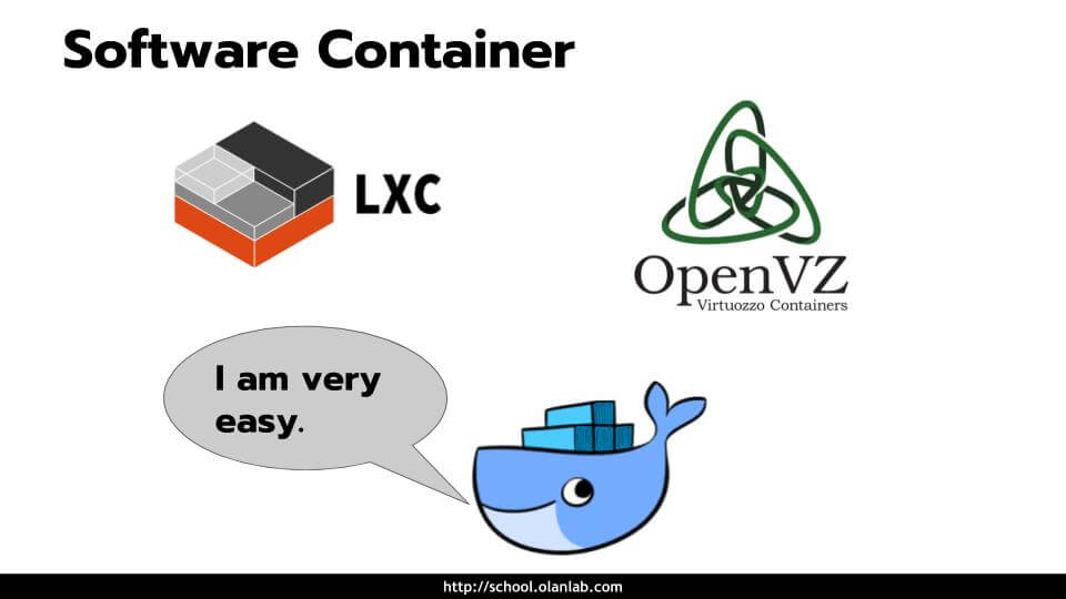 โดย Docker ทำหน้าที่เป็น Software Container ถูกสร้างและออกแบบมาเพื่อสร้างสภาพแวดล้อมให้ แอพพลิเคชั่น ของเราทำงาน โดยไม่ไปกวนกับ แอพพลิเคชั่นตัวอื่น ที่อยู่บนระบบปฎิบัติการเดียวกัน (OS) การใช้งาน Docker นั่นง่ายมากๆ จึงเป็นที่นิยมกันแพร่หลายในปัจจุบัน ในหมู่ Developer, System Admin, DevOps และอื่นๆ
