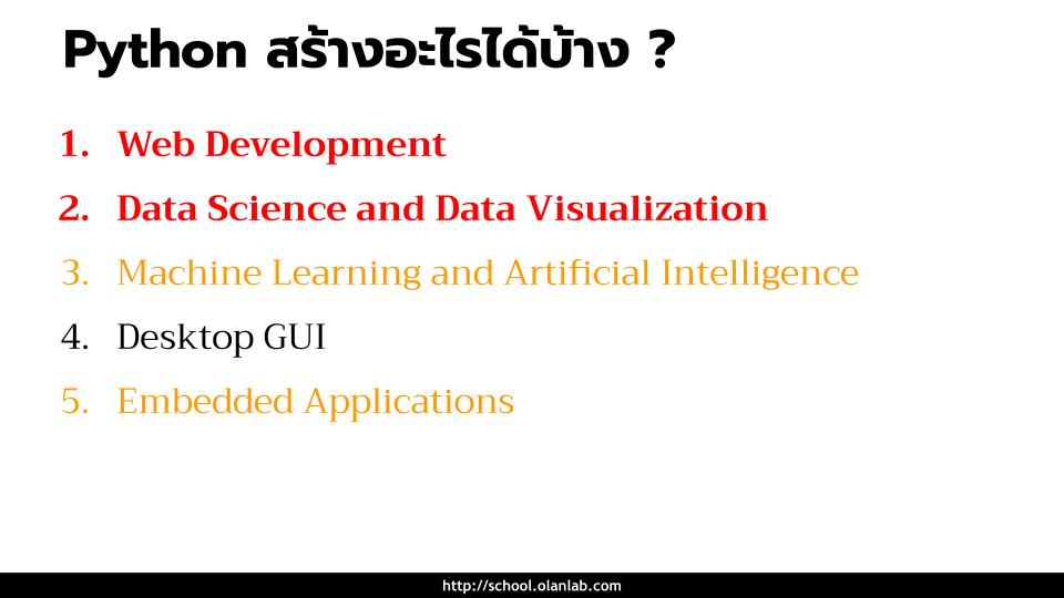 Python ยังเป็นที่ต้องการในงานด้านต่างๆ ไม่ว่าจะเป็น Web Development, Data Science, Data Analysis, AI ,Machine Learning, Embedded Application, Desktop GUI เป็นต้น สามารถนำไปใช้ได้จริงในระบบงานใหญ่ๆ ไม่ว่า Instagram, Netflix, Dropbox ได้นำภาษา Python ไปพัฒนาระบบส่วนหนึ่งในบริษัท